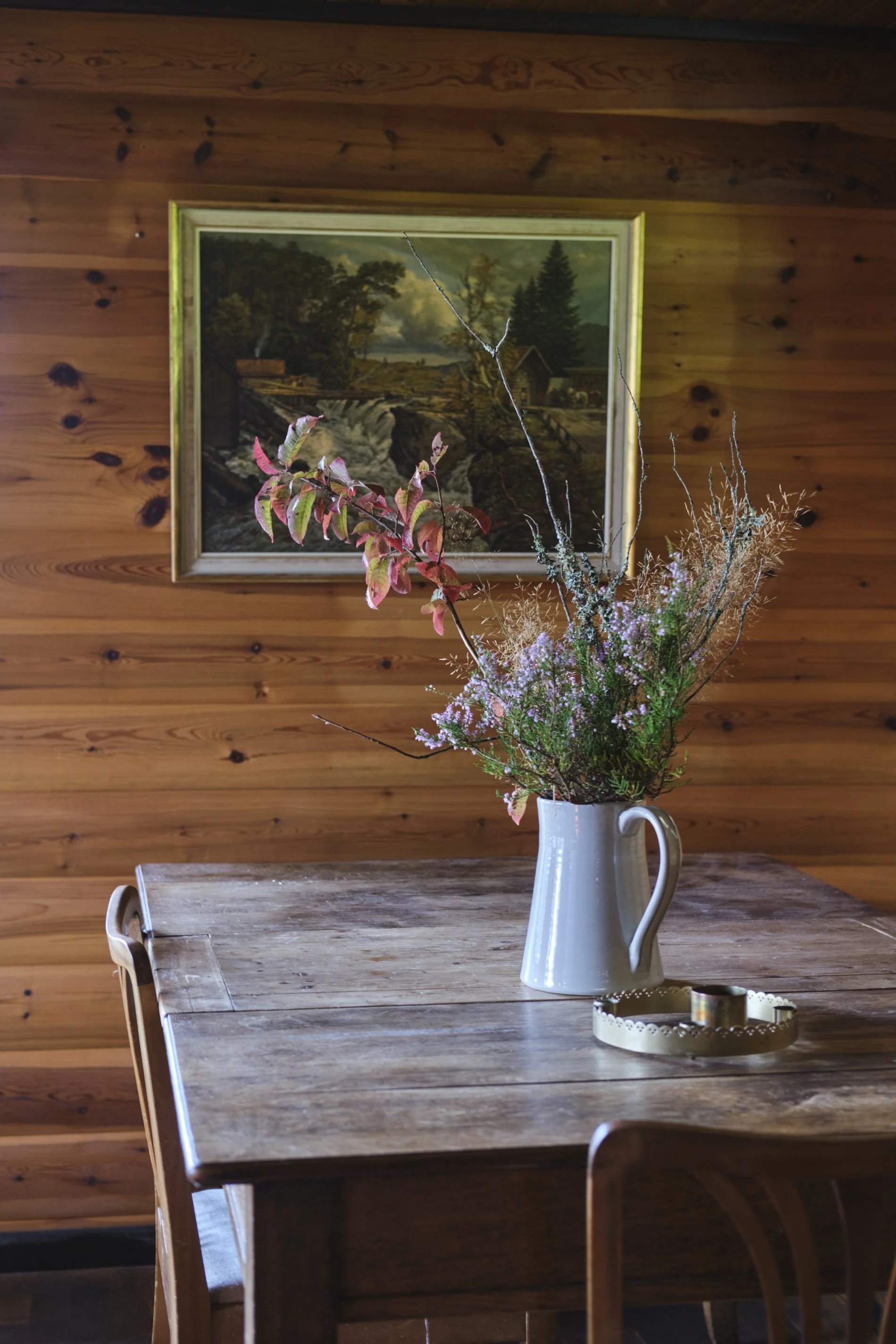 These off-grid cabins were once common across Norway, and this one was a textbook example: dark yellowed pine from floor to ceiling, red polyester curtains, and furniture that looked straight out of a second-hand store’s reject pile.My friend jokingly called it “furuhelvete” - roughly translated, “pine hell”. The interior seemed to pull you away from the beauty outside instead of connecting you to it.We stripped everything down, including a crooked kitchen inexplicably built below hip height. The goal was to transform the space into a writer’s den - one that felt grounded, masculine, and true to Norwegian tradition, but with a more organic, natural touch.Time and budget were limited, and the off-grid setting without running water or electricity made this project a real challenge.